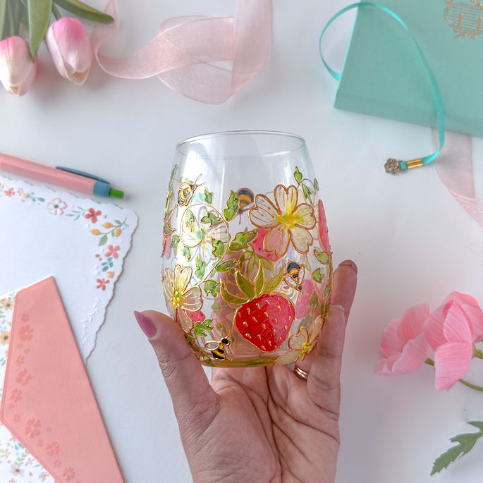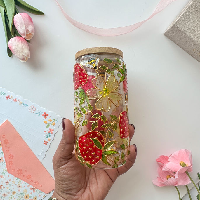 Sweet fruits, tiny berries, and mushrooms with character. Each design is hand-painted using layered colors and stained-glass techniques, creating pieces that feel joyful, whimsical, and just a little enchanted.